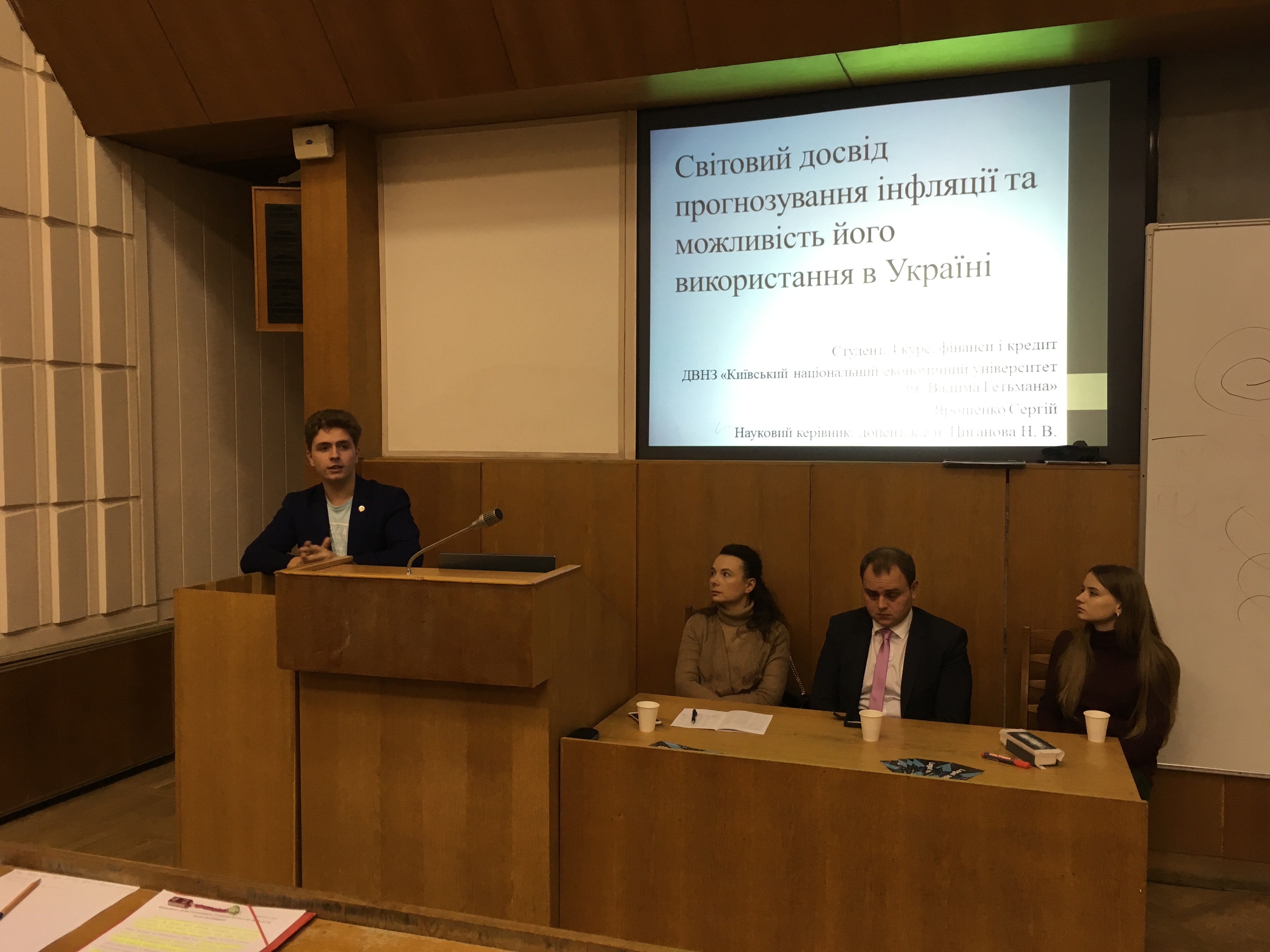 26 жовтня 2017 року в Інституті міжнародних відносин Київського національного університету імені Тараса Шевченка відбулася Міжнародна науково-практична конференція студентів «Актуальні проблеми міжнародних відносин». Кафедру банківської справи КНЕУ представляли студенти Орел Вікторія з доповіддю «Доларизація економіки України в умовах фінансової нестабільності» та Ярошенко Сергій з виступом «Світовий досвід прогнозування інфляції та можливість його використання в Україні» (керівник доц. Н.В. Циганова)