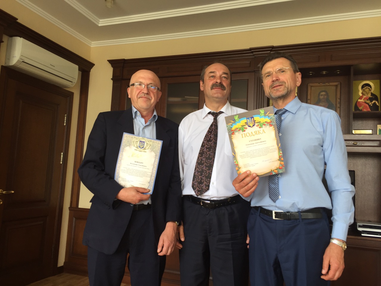 30.05.2017 Завідувач кафедри банківської справи Аржевітін С.М. вручив нагороди Сугоняко О.- Президентові АУБ та віце-президентові АУБ- Бондар В. за активну співпрацю з громадською Колегією при НБУ.