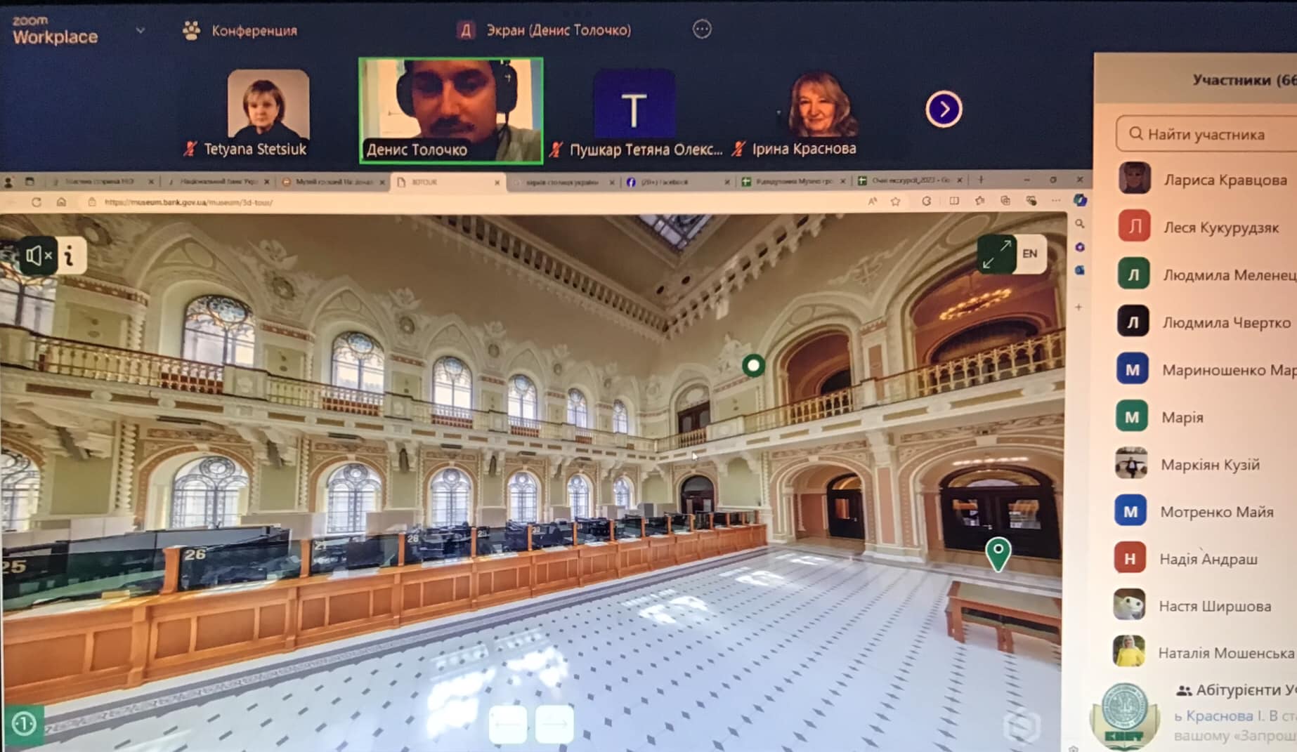 Екскурсія операційною залою НБУ14 Серпня 2024р.![]() Шановні друзі, а чи знаєте ви, що у серпні будівля головного Національного банку святкує своє 119-річчя До цієї визначної події, 14.08.2024 Музей грошей Національний банк України для усіх поціновувачів історії Києва! Екскурсовод - Денис ТОЛОЧКО показав і розказав про: «є усні свідчення і перекази, що часто закохані призначали побачення біля банку; приїжджали фотографуватися на фоні державного банку в день весілля і все це, повʼязували з достатком сімʼї»! Дякуємо, Музею грошей НБУ за таку історичну екскурсію! Було цікаво і пізнавально Учасниками віртуальної екскурсії були і наші колеги: д.е.н. професор Ирина Краснова к.е.н. доцент Tetyana Stetsiuk абітурієнти ОПП «Банківський бізнес»; абітурієнти ОПП «Управління фінансовим бізнесом», які уже підтвердили своє навчання в КНЕУ |