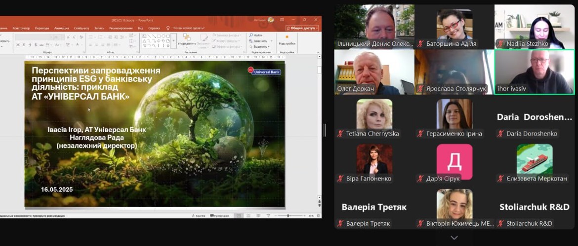 Професор кафедри, член наглядової ради АТ Універсал Банк, І. Б. Івасів взяв участь у роботі круглого столу «Євроінтеграційний вимір зеленої трансформації економіки України: синергія бізнесу, влади, освіти і громад», який був організований за рахунок фінансування Євросоюзу і зібрав майже сотню учасників. Виступив про перспективи запровадження принципів ESG у банківську діяльність на прикладі АТ УНІВЕРСАЛ БАНК. В доповіді підкреслено, що останніми роками банки запроваджували окремі елементи ESG-стратегії без регуляторного тиску, за власною ініціативою. Зараз же, коли НБУ активно формує нормативну базу для ESG (згідно з Білою книгою вимоги до розкриття ESG-інформації очікуються до 2027 року), можна очікувати значного пожвавлення активності банків у цій царині.