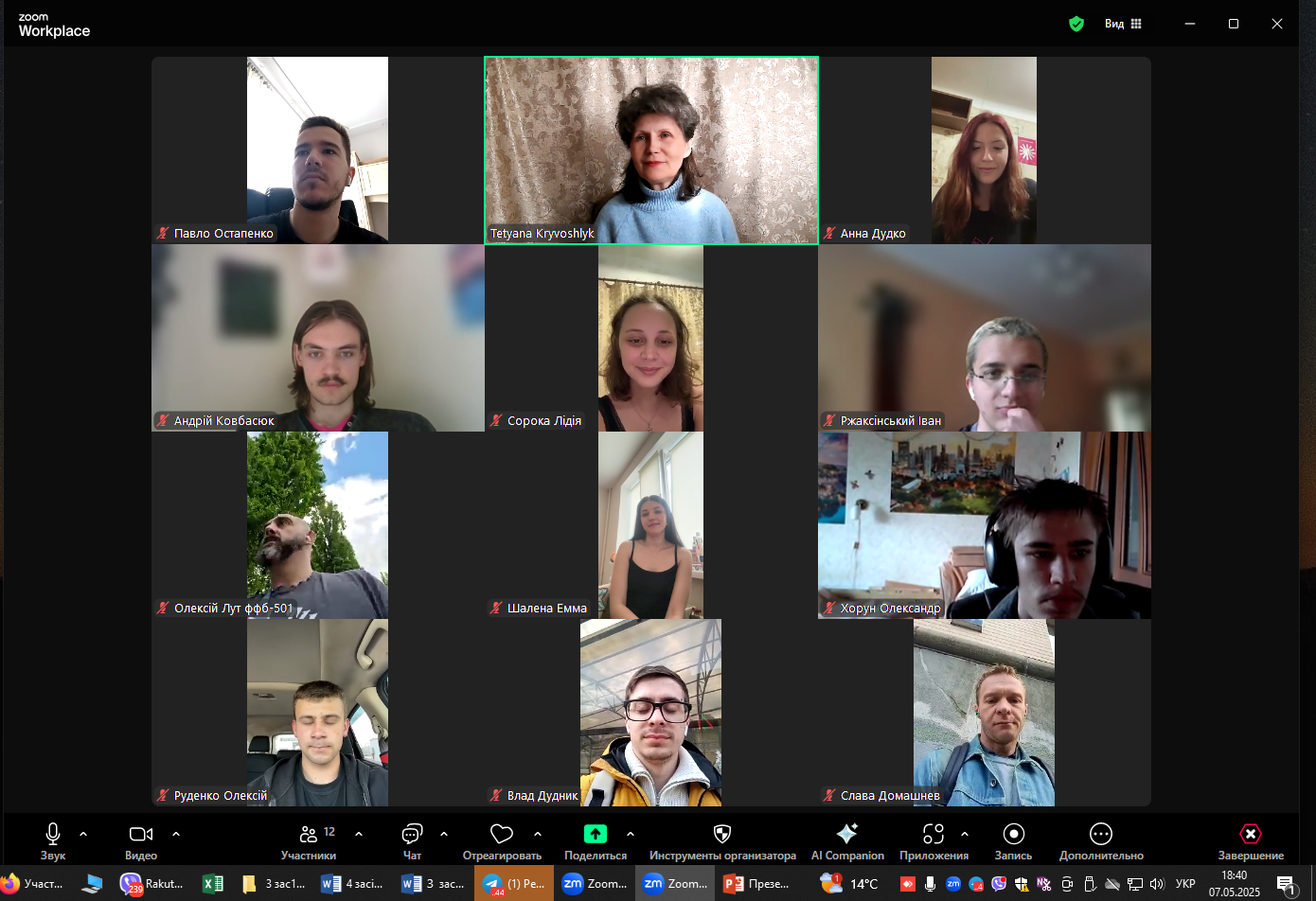 7 травня 2025 р. під керівництвом к.е.н., доцента, професора Кривошлик Т.Д., кафедра банківської справи та страхування провела у Zoom засідання студентського наукового гуртка «Страхування та фінансова безпека».