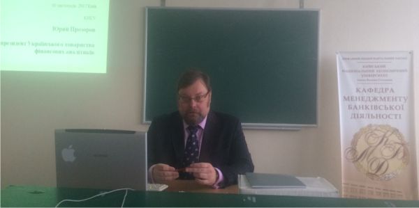 30 листопада Президент УТФА, голова Експертної ради ФГВФЛ, член Вищої Експертної Ради при Раді НБУ Юрій Прозоров провів, за сприяння кафедри менеджменту банківської діяльності, традиційну відкриту лекцію перед студентами КНЕУ.